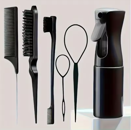 6PCS Hair Styling Brush & Comb Set with Spray Bottle